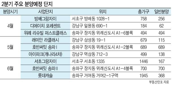 4~6월에는 인기 단지 분양이 대거 예정돼 있다. 인근 위례신도시 송파권에서는 ‘북위례 계룡 리슈빌’과 ‘호반써밋 송파I·II’가 분양 예정이다.