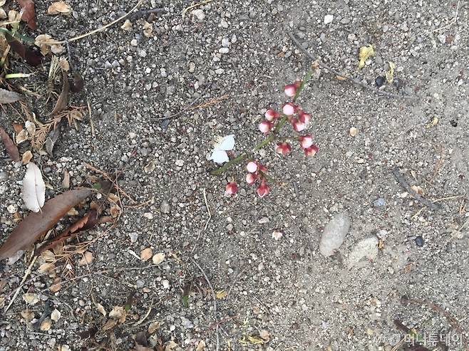 땅에 떨어진 꽃잎이 보이더라고.