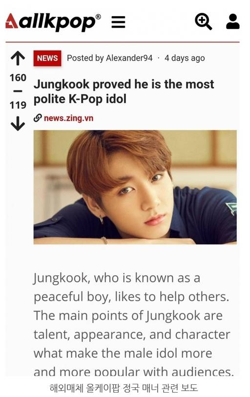 외국 매체 '올케이팝(allkpop)'에서도 방탄소년단 정국의 따뜻하고 다정한 매너를 기사로 다루며 큰 이슈와 화제를 모았다.