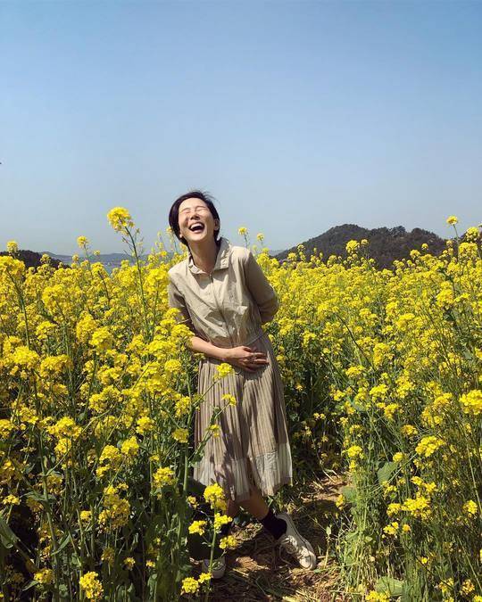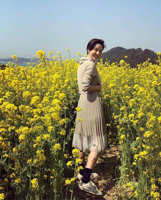 공개된 사진 속 김나영은 유채꽃 향기에 취한 듯 행복한 표정을 짓고 있다.