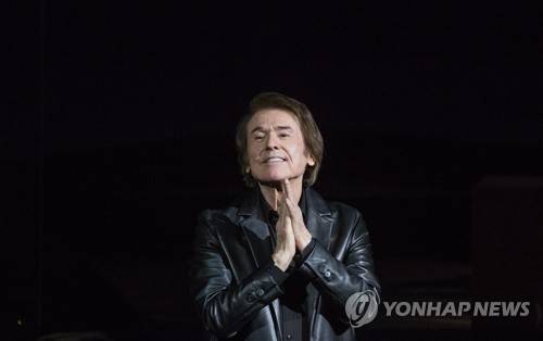 epa07497079 Spanish singer Raphael (Miguel Rafael Martos Sanchez) performs in the House of Music in Moscow, Russia, 10 April 2019. The concert, part of Raphael's tour 'Crazy to sing', was postponed until today due to 'a great dysphonia.' EPA/SERGEI ILNITSKY
