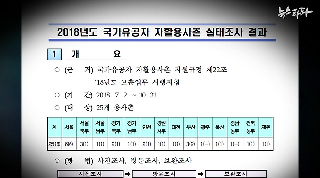 자활용사촌에 대한 실태조사 결과도 엉터리였다. 국가보훈처는 지난해 7월부터 10월말까지 4개월간 전국 25개 용사촌을 대상으로 실태조사를 벌였다.
