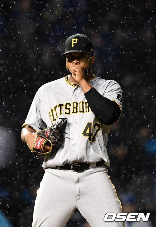 7회말 1사 2루 상황 마운드에 오른 피츠버그 투수 프란시스코 리리아노가 투구를 준비하며 손에 입김을 불고 있다. /dreamer@osen.co.kr