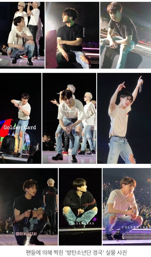 콘서트장 무대에 근접하게 위치해 있던 팬들은 폰을 사용하여 방탄소년단 정국을 찍은 실물 사진들을 SNS에 무수히 올리며 현실감 없이 완벽히 살아있는 조각같은 이목구비와 얼굴선에 팬들은 극찬을 아끼지 않았다. 특히 전체 샷은 만화에서 방금 나온 듯 완벽한 비율을 자랑해 무한의 감탄을 보냈다.