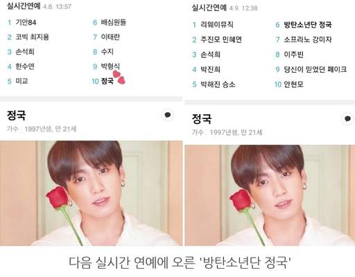 지난 8∼9일 방탄소년단 정국은 다음 실시간연예 검색에 5위까지 올라 국내에서의 꾸준한 인기를 증명했다.
