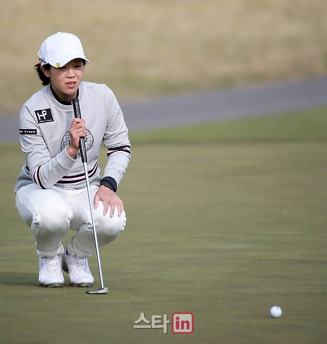 [이데일리 골프in=울산 박태성기자] 13일 경남 울산시 울주군에 위치한 보라 컨트리클럽(파72ㅣ6674야드)에서 2019 시즌 네 번째 대회이자 올 시즌 처음으로 선보이는 '셀트리온 퀸즈 마스터즈(총상금 8억 원, 우승상금 1억 6천만 원) 2라운드가 열린가운데,오전조로 출발한 임진희(21)가 11번홀 그린에서 퍼팅 라인을 살피고 있다.