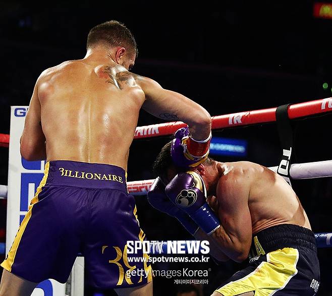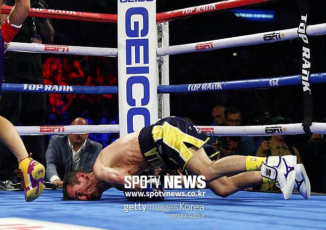 ▲ 바실 로마첸코는 오른손 훅으로 앤서니 크롤라를 4라운드 58초 KO로 꺾었다.