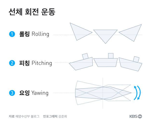 바다에서는 항상 예측 가능/불가능한 바람과 파도가 끊이질 않습니다. 이 바람/파도는 배를 흔들어 가볍게는 멀미를 나게 하지만, 심하면 배를 뒤집는 힘을 갖고 있습니다. 배가 좌우로 흔들리는 것을 롤링, 앞 뒤로 흔들리는 것을 피칭, 복합적인 파랑이 생기면 그래픽과 같은 요잉 현상까지 일어납니다.