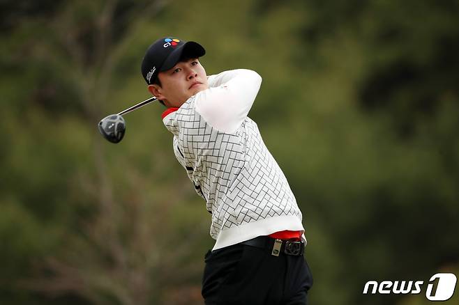 이재경이 18일 경기도 포천 대유몽베르CC에서 열린 DB손해보험 프로미오픈 1라운드 18번 홀에서 티샷을 하고 있다. (KPGA 제공) 2019.4.18/뉴스1