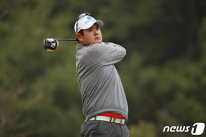 한민규가 18일 경기도 포천 대유몽베르CC에서 열린 DB손해보험 프로미오픈 1라운드 18번 홀에서 드라이버 티샷을 하고 있다. (KPGA 제공) 2019.4.18/뉴스1