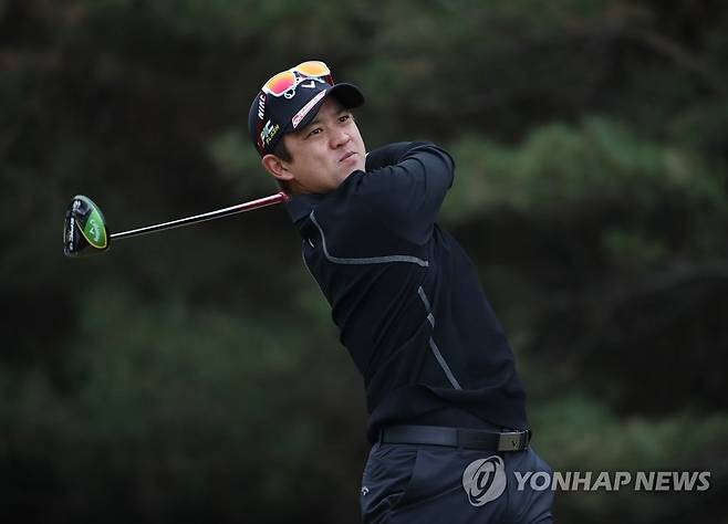 (서울=연합뉴스) 19일 경기도 포천시 대유몽베르CC에서 열린 DB손해보험 프로미오픈 2라운드 중 케빈 전이 14번홀 드라이버 티샷하고 있다. 2019.4.19 [KPGA 제공]