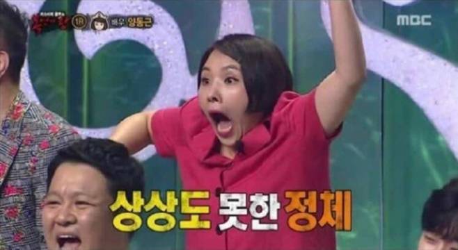 MBC ‘복면가왕’ 촬영 중, 복면 가수의 정체에 놀란 신봉선이 양 팔을 각각 직각으로 내리고 올려 만든 이 포즈는 주요 온라인 커뮤니티와 사회관계망서비스(SNS) 등에서 회자되며 큰 사랑을 받았다.