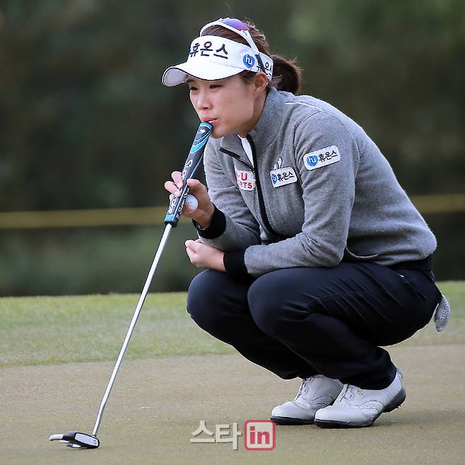 [이데일리 골프in=김해 박태성기자] 19일 경남 김해에 위치한 가야 컨트리클럽(파72ㅣ6808야드)에서 KLPGA 2019시즌 다섯 번째 대회인 '넥센 세인트나인 마스터즈(총상금 6억 원, 우승상금 1억 2천만 원) 1라운드가 열린가운데,최민경(25.휴온스)이 10번홀 그린에서 퍼팅 라인을 살피고 있다.