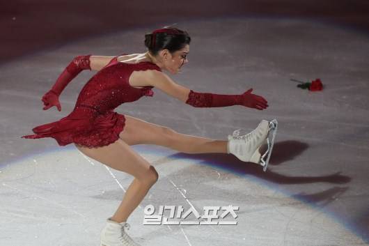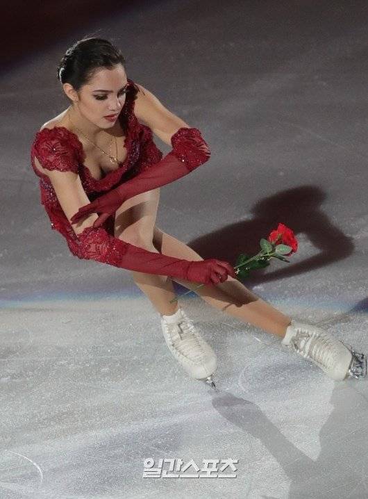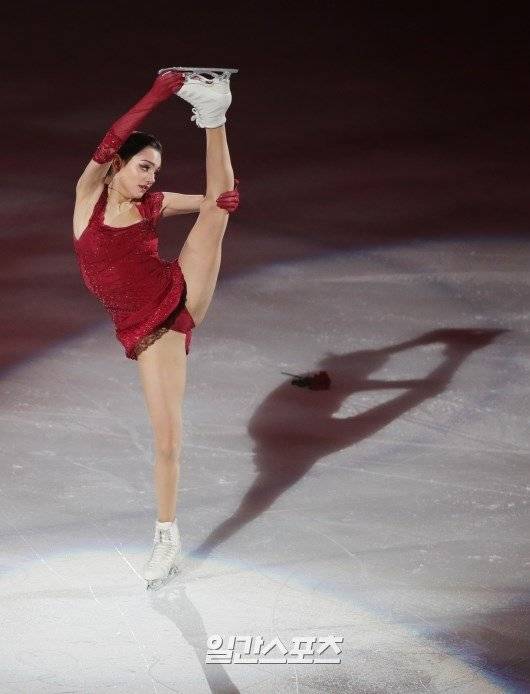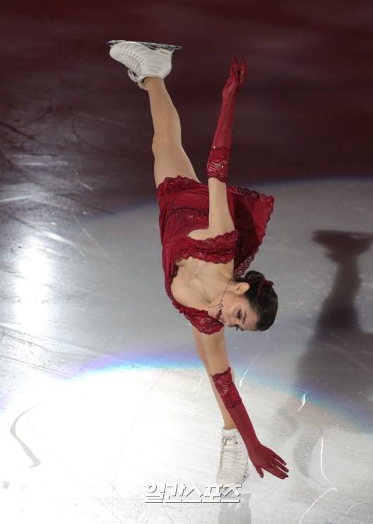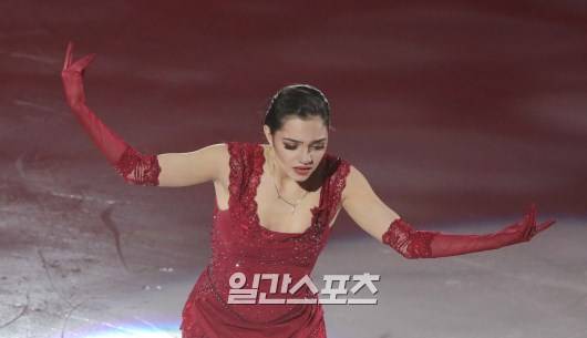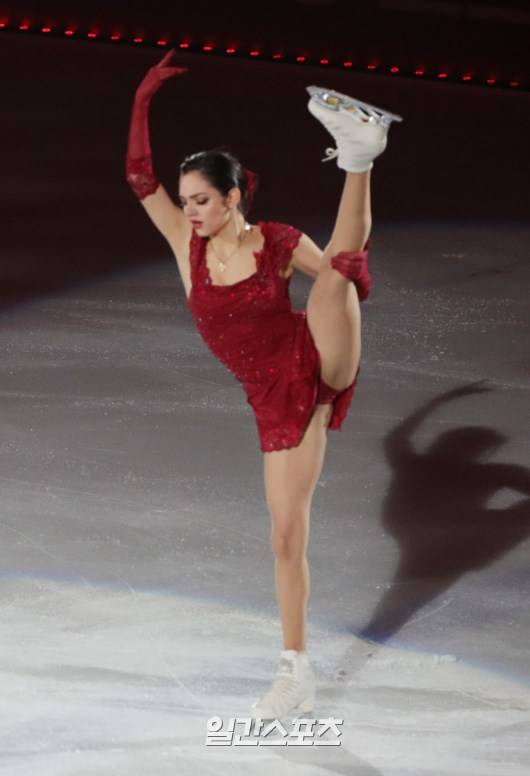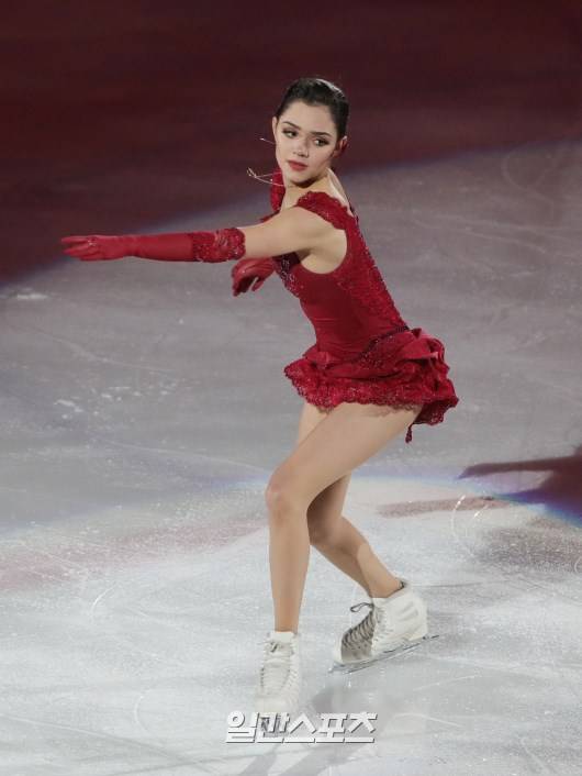 예브게니야 메드베데바가 19일 '인공지능 LG ThinQ 아이스판타지아 2019' 스페셜 갈라 프로그램 '보이 위드 어 스타(Boy with a star)' 무대인 목동아이스링크에서 공연하고 있다.