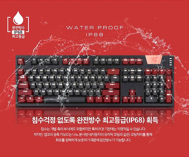 또한 IP68 최고 등급을 받은 K664 ARC 프리미엄 카일 광축 키보드는 완전 방진, 완전 방수 기능을 통해 일반적으로 침수에 취약한 기계식 키보드와 달리 나노 분사 코팅 방식으로 제작되어 물, 커피, 음식물 등 오염 물질로 인한 고장 문제를 걱정하지 않고 자유롭고 편안하게 사용할 수 있다.