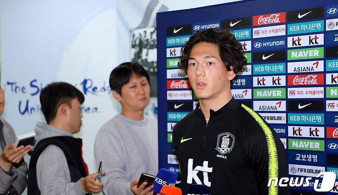(파주=뉴스1) 황기선 기자 = 대한민국 남자 U-20 축구대표팀 최민수가 25일 오후 경기 파주시 축구대표팀트레이닝센터(NFC)에서 인터뷰를 하고 있다.