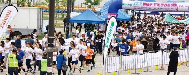 ‘2019 여의도벚꽃마라톤대회’가 28일 서울 여의도 한강시민공원에서 6000여 명의 직장인 아마추어 마라토너가 참가한 가운데 열렸다. 대한직장인체육회, 한국마라톤TV가 주최하고 모두투어와 타이완관광청이 후원한 이 대회는 풀코스, 하프코스, 10㎞, 5㎞ 등 네 부문으로 나눠 진행됐다. 참가 선수들에게는 인천~타이베이 항공권, 국내 선박 승선권 등의 경품이 골고루 돌아갔다.