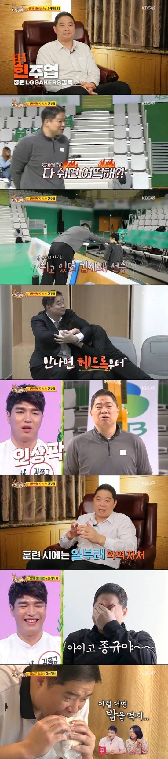 현주엽 감독이 두 번째 보스로 나왔다. 현주엽은 자신이 어떤 감독인 것 같으냐는 질문을 받고 "갑은 아닌 것 같다. 편안한 스타일?"이라고 말했다. 이에 스튜디오에 출연한 강병현과 김종규는 어이없다는 듯 웃었다.