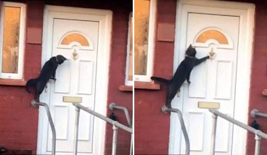 영국에서 새벽 6시쯤 고양이 한 마리가 자택에 들어가기 위해 집주인 아니 집사(?)에게 들리도록 현관문 앞에서 계속해서 문고리를 두드리는 놀라운 순간이 카메라에 포착돼 화제다.