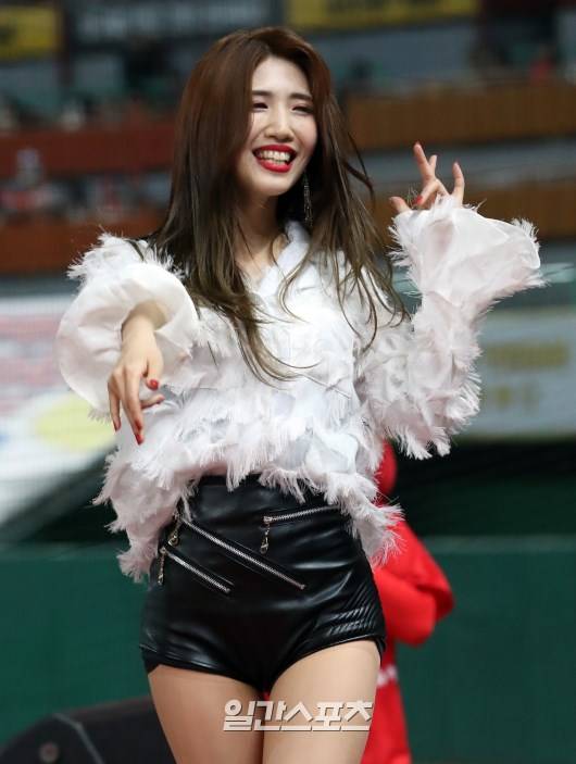 프로야구 2019 신한은행 MY CAR KBO리그 SK-키움 경기가 30일 오후 인천 SK행복드림구장에서 열렸다. SK 치어리더 김희진이 경기중간 댄스공연을 펼치고있다.. 인천=정시종 기자 jung.sichong@jtbc.co.kr /2019.04.30.