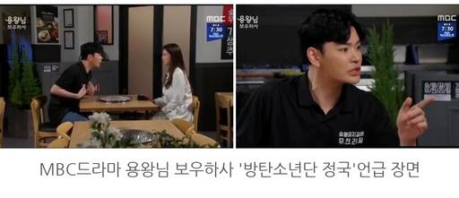 MBC 일일 드라마 '용왕님 보우하사'에서 방탄소년단 정국이 드라마 대사에 언급돼 팬들의 놀라움과 환호를 자아냈다.