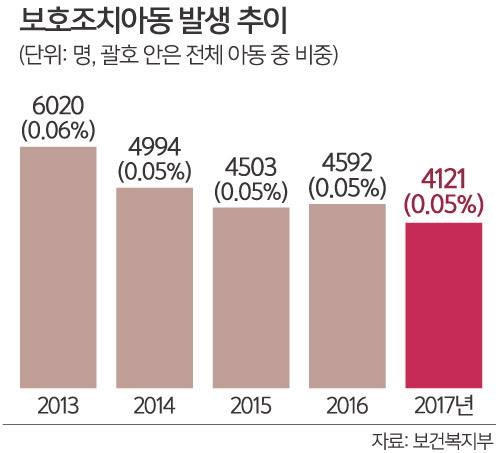2일 보건복지부에 따르면 보호조치 아동 수는 2017년 말 현재 4121명이다. ‘보호조치’란 보호가 필요한 아동을 원가정 대신 보육원이나 그룹홈, 입양가정 등에서 돌보는 것을 말한다.