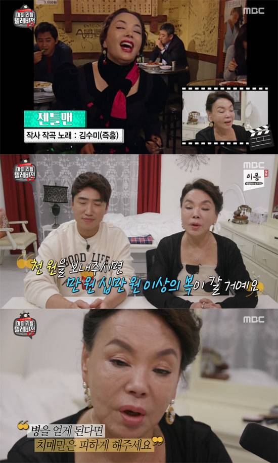 "전원일기의 일용엄니를 잊게 한 작품이다"는 김수미는 "여기서 나오는 욕이 거의 애드리브다. 저는 대본대로 안한다"고 말했다. "애드리브는 타고나는 것이다. 잘못 쓰면 작품 망친다. 잘 써야 한다"며 자화자찬해 웃음을 안기며 "'젠틀맨'은 애드립으로 만들어진 노래인데, 극 중 가사도 대본 없이 즉석에서 나온 거다. 그때 대단했지"라고 더해 폭소를 안겼다.