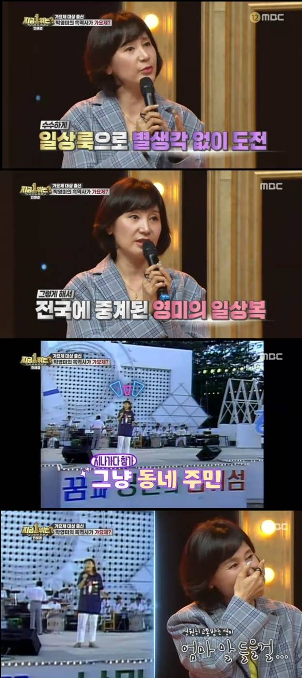 박영미는 "가요제 나가기 전 어머니가 옷을 한 벌 사주겠다고 했는데 뭘 사주냐며 괜찮다고 했다. 당일날 리허설이 끝나고 나니 가수들이 모두 옷을 갈아입더라. 그런데 저만 그대로 입고 올라갔다"고 설명했다.