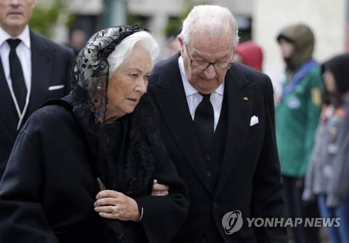 epa07546295 Belgium's former King Albert II (R) and Queen Paola (L) arrive for the funeral of Grand Duc Jean of Luxembourg, in Luxembourg, 03 May 2019. Grand Duc Jean died at the age of 98 on 23 April 2019. EPA/JULIEN WARNAND