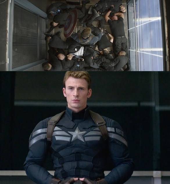 이 외에도 미래에서 온 캡틴 아메리카를 로키(톰 히들스턴 분)라고 착각한 과거의 캡틴 아메리카가 “난 하루종일도 할 수 있어”라고 하자 미래에서 온 캡틴 아메리카는 “그래, 나도 알아”라고 하는 대사와 자신과의 싸움에서 승리한(?) 미래의 캡틴 아메리카가 “이정도는 돼야 캡틴아메리카 엉덩이지”라며 자화자찬을 하는 장면은 이 영화의 웃음 포인트다.