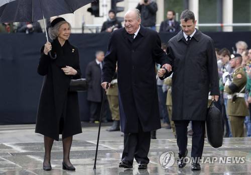 epa07546458 Spanish emeritus King Juan Carlos I (C) and emeritus Queen Sofia (L) arrive for the funeral of Grand Duc Jean of Luxembourg, in Luxembourg, 03 May 2019. Grand Duc Jean died at the age of 98 on 23 April 2019. EPA/JULIEN WARNAND
