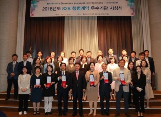 올해로 일곱 번째를 맞는 S2B 청렴계약 우수기관 시상식은 지난해 S2B 이용실적과 전년대비 증감률 등 부문별 선정기준에 따라 시도교육청, 교육지원청, 각급학교 세 개 부문별로 우수기관을 선정하고 시상하는 행사입니다.