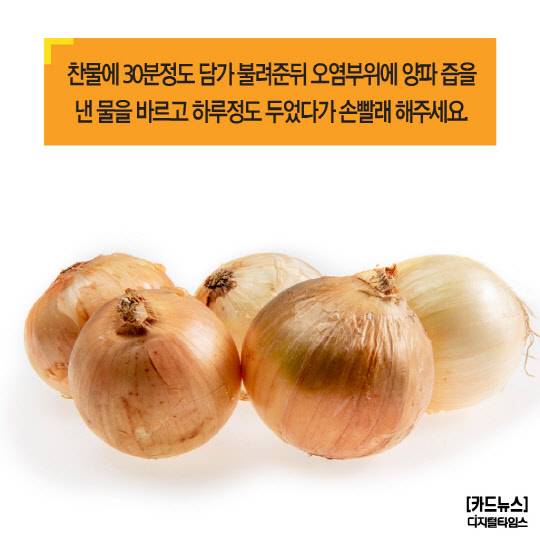 오염부위에 양파 즙을 낸 물을 바르고
