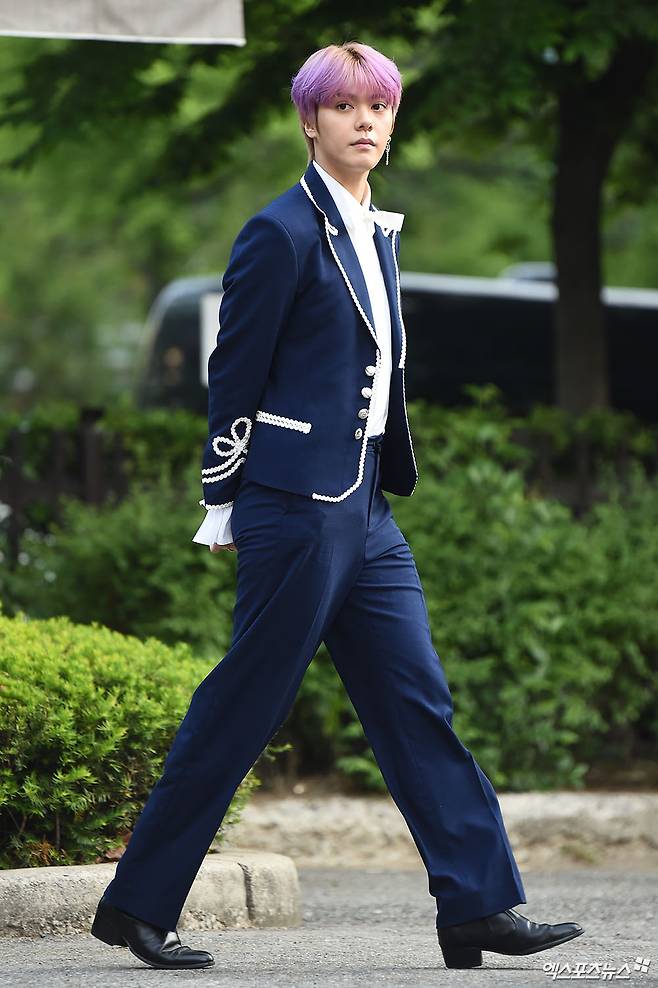 [엑스포츠뉴스 박지영 기자] 10일 오전 서울 여의도동 KBS 신관에서 진행된 KBS 2TV '뮤직뱅크' 리허설에 참석한 뉴키드 지한솔이 출근길에 포즈를 취하고 있다.