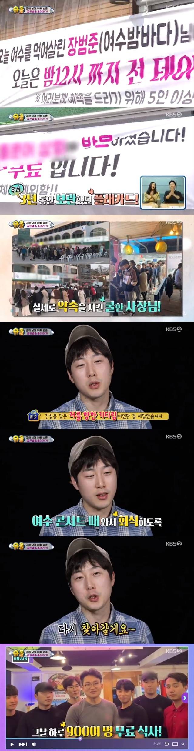 '슈퍼맨' 장범준 여수 뜨자 식당 골든벨 "900명 공짜 식사"[결정적장면]