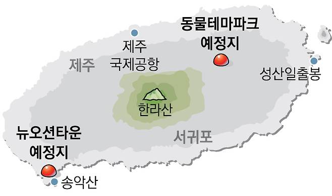 [서울신문]제주는 대규모 개발 바람과 관광객 폭증, 이주민 등 인구 증가 등으로 쓰레기난과 하수처리난을 겪고 있다. 이런 가운데 중국자본이 투자하는 송악산 개발사업과 국내자본이 들어가는 제주동물테마피크 사업 등 대규모 개발이 추진돼 논란이 되고 있다. 마을주민들과 환경단체 등은 더이상 난개발은 안 된다며 반발한다. 반면 제주도는 투자 유치와 일자리 창출, 지역경제 활성화 효과 등을 검토하는 등 사업 승인을 놓고 고심하고 있어 결과가 주목된다.송악산 유원지 개발은 중국 칭다오에 본사를 둔 ‘신해원 유한회사’가 사업시행자로 ‘뉴오션타운 조성사업’이 공식 명칭이다. 3219억원을 투자해 호텔 2개 동(545실)과 휴양특수시설(문화센터, 캠핑시설, 조각공원), 편익시설(로컬푸드점, 상업시설)을 지을 계획이다.