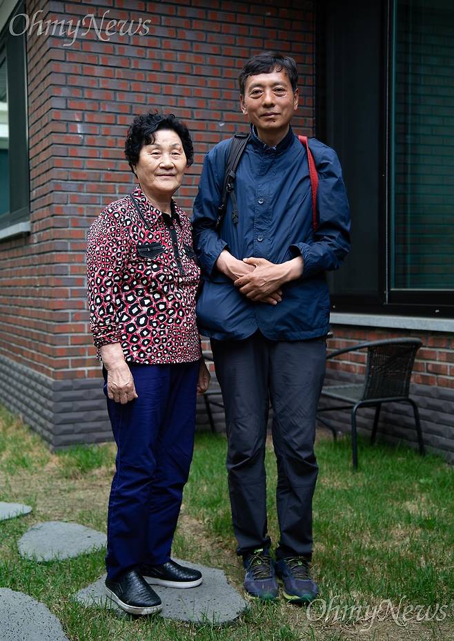 | ▲ 인터뷰를 마치고 함께 선 고 문재학씨 어머니 김길자(80)씨와 김향득(57)씨. |