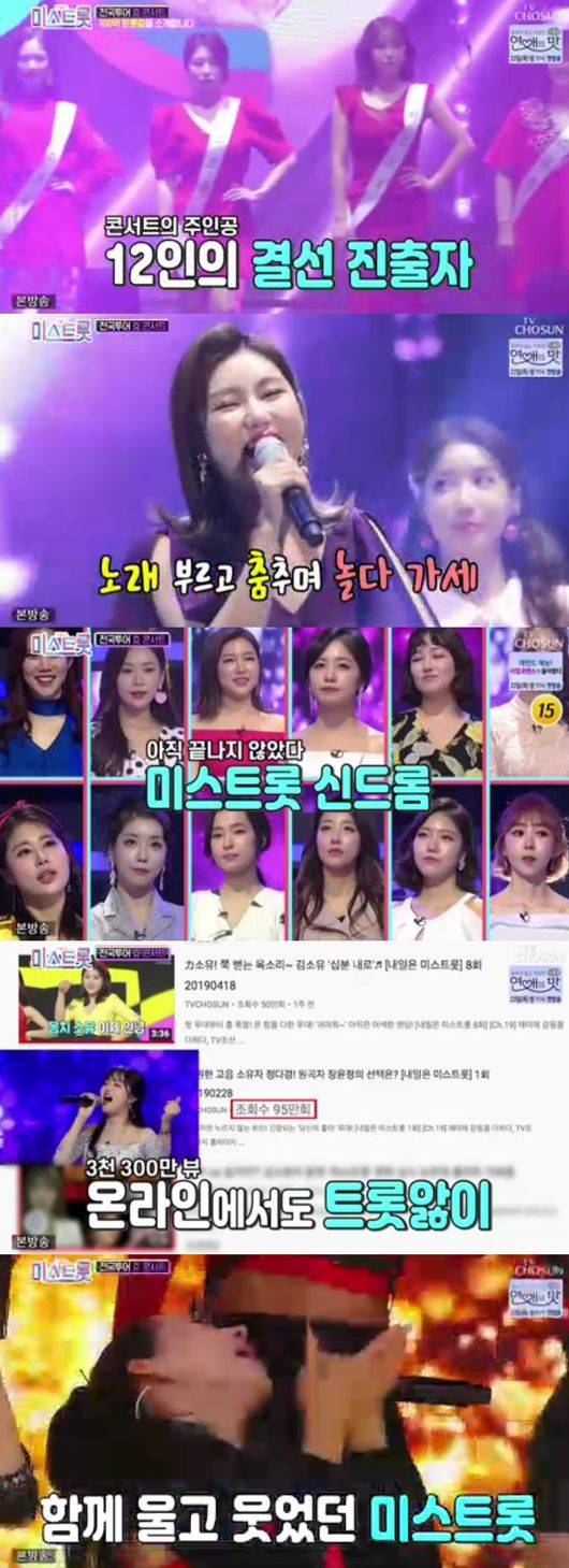 이처럼, 대한민국의 트롯열풍이 불게하며 트롯의 가능성을 보여준 '미스트롯', 온라인에서도 트롯앓이는 계속됐다. 음원차트도 상위권을 석권하는 등 한계를 모르는 실력들을 폭발하는 등, 이번 콘서트 만으로도 역대 최고의 열풍을 휩쓴 미스트롯의 신드롬은 아직 끝나지 않았음을 증명했다.
