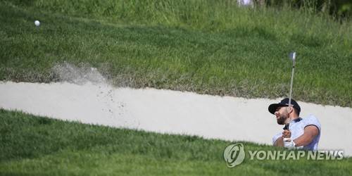 epa07582380 Erik van Rooyen of South Africa hits out of a bunker on the fifth hole during the third round of the 2019 PGA Championship at Bethpage Black in Farmingdale, New York, USA, 18 May 2019. The Championship runs from 16-19 May. EPA/JUSTIN LANE