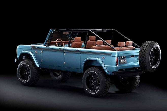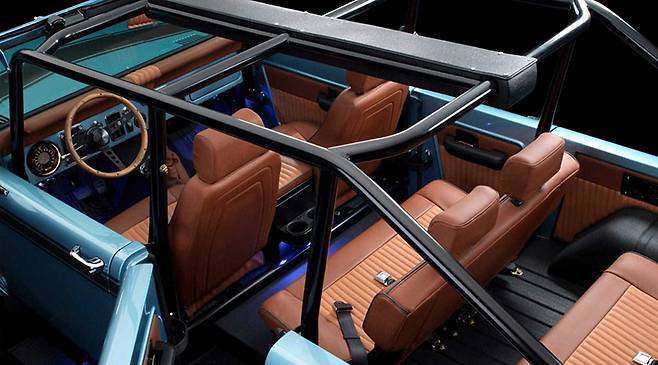 완전히 제거된 루프에는 견고한 롤케이지를 적용해 전복 시 탑승자의 안전을 보호하며, 그 안쪽으로는 브롱코에 담긴 클래식한 인테리어 디자인 및 시트 구성이 고스란히 노출된다.