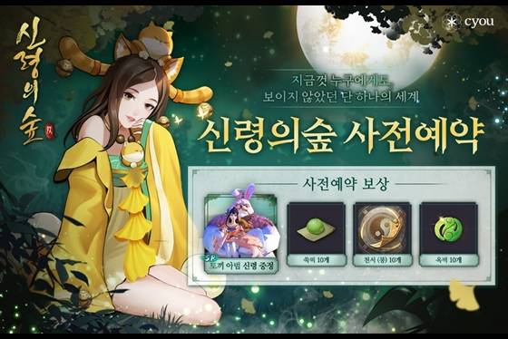 '신령의숲' 사전예약은 안드로이드와 iOS 이용자 모두 참여 가능하며 신청자 전원에게는 정식 출시에 맞춰 신령토끼아범과 쑥떡, 천서, 옥벽 등의 게임 아이템이 제공된다.
