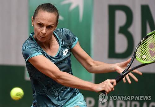 epa07602236 Magdalena Rybarikova of Slovakia plays Johanna Larsson of Sweden during their women?s first round match during the French Open tennis tournament at Roland Garros in Paris, France, 26 May 2019. EPA/CAROLINE BLUMBERG