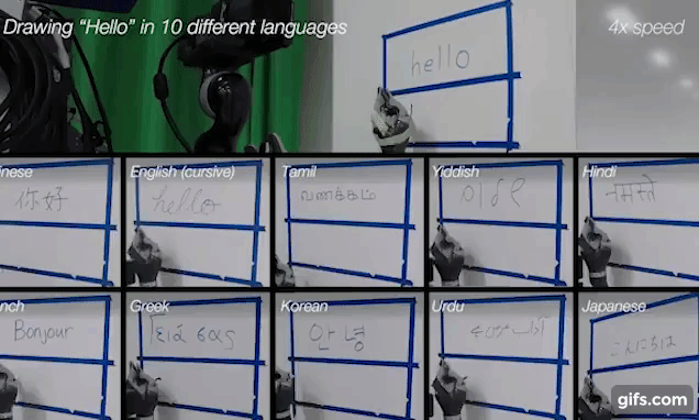 이 밖에도 연구진은 6살 아이들로 이뤄진 한 그룹이 칠판에 각 나라말로 ‘안녕’이라는 단어를 적었을 때 로봇이 베껴 쓸 수 있는지를 시험했다. 이 역시 로봇은 쉽게 복사하듯 쓸 수 있었다.