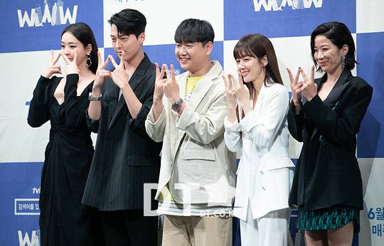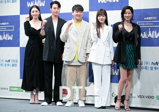 배우 이다희, 임수정, 전혜진, 장기용과 정지현 감독이 29일 강남구 임피리얼 팰리스 서울 호텔에서 열린 tvN 수목 드라마 '검색어를 입력하세요 WWW' 제작발표회에서 포즈를 취하고 있다.