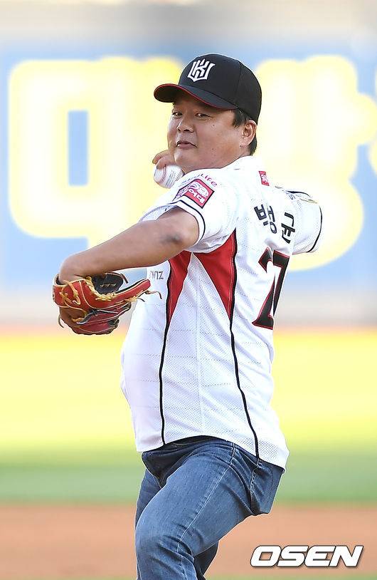 성남고 박성균 감독이 시구를 하고 있다. /youngrae@osen.co.kr