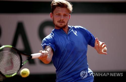epa07615300 David Goffin of Belgium plays Rafael Nadal of Spain during their men?s third round match during the French Open tennis tournament at Roland Garros in Paris, France, 31 May 2019. EPA/YOAN VALAT