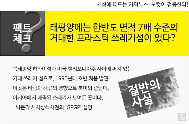 국내에서 해양쓰레기 문제를 전문적으로 다루는 민간단체 오션에서 한국해양쓰레기연구소장으로 있는 이종명 박사도 거대한 태평양에 플라스틱 쓰레기섬은 없다고 선을 그었다.