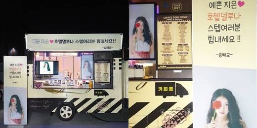 [마이데일리 = 이예은 기자] 배우 송혜교가 가수 겸 배우 아이유(이지은)에 커피차를 선물했다.
