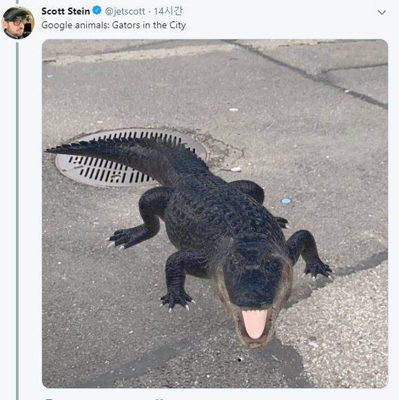 미국에선 새로운 구글의 AR기능을 활용해 다양한 동물을 찍은 인증샷을 SNS에 올리고 있다.