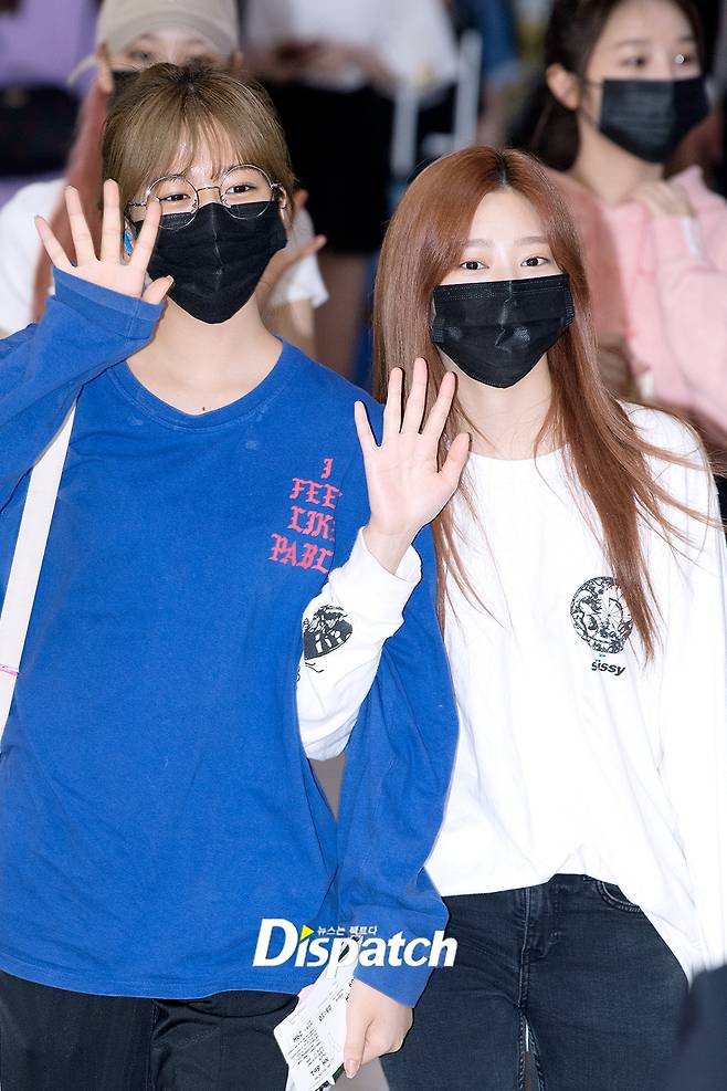 '아이즈원' 안유진 김민주는 이날 해맑은 미소로 입국장에 들어섰다. 공항에 모인 수많은 팬들과 취재진을 향해 인사를 하는 등 남다른 팬서비스도 선보였다.